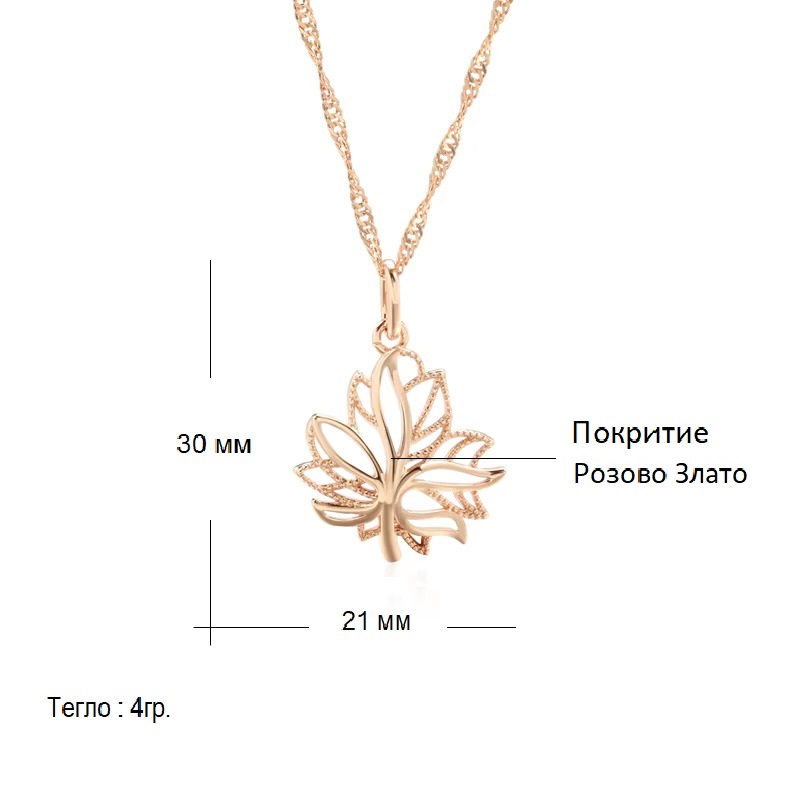 Бижуто е създадено от бижутерийна сплав, която е позлатена със 18 каратово италианско розово злато.