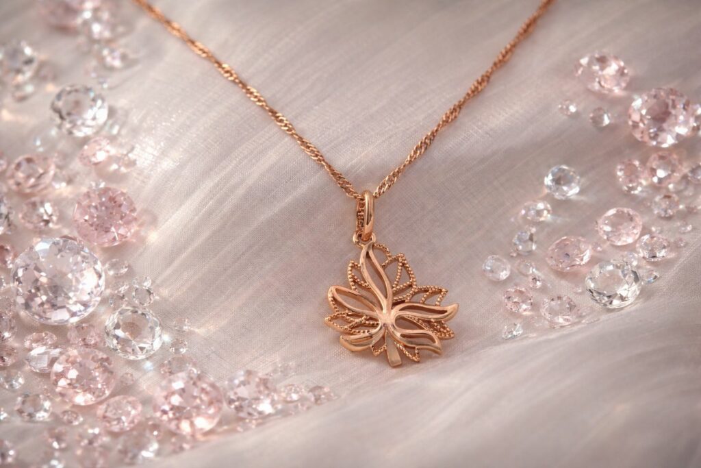 Бижуто е създадено от бижутерийна сплав, която е позлатена със 18 каратово италианско розово злато.